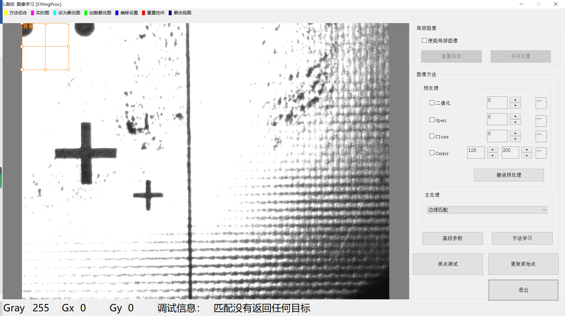 點(diǎn)擊【方法學(xué)習(xí)】,橙色區(qū)域的局部圖像作為模板被學(xué)習(xí)及保存,并自動(dòng)執(zhí)行圖像處理并顯示結(jié)果。