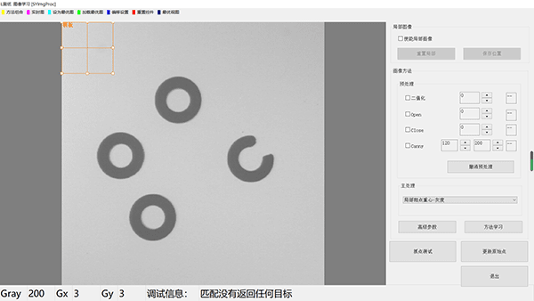 在主處理下拉列表中選擇《局部斑點重心--灰度》,在圖像范圍內(nèi)將出現(xiàn)一個橙色矩形框。如未見矩形框,可點擊圖像上方工具欄《重置控件》。