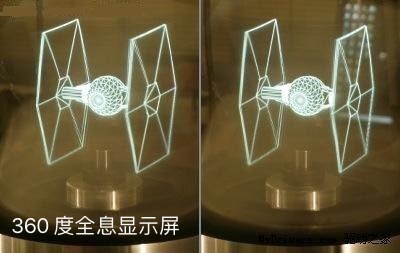 360 度全息顯示屏:由南加利福尼亞大學(xué) 2007 年研制,將圖像投影在高速旋轉(zhuǎn)的鏡面上,并由計(jì)算機(jī)進(jìn)行視頻信號(hào)渲染。