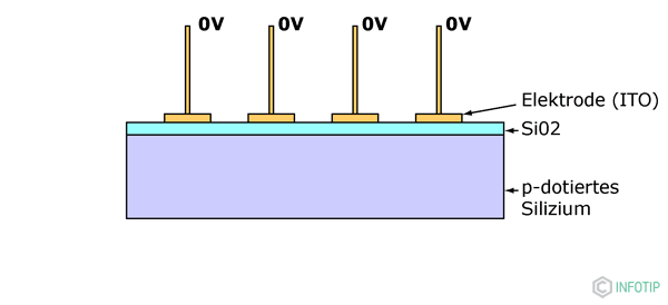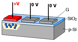 當(dāng)柵極電壓高時,氧化層下方會產(chǎn)生勢能阱(Potential Well)。傳入的光子可以激發(fā)勢阱中的電子,這些電子可以被收集和引導(dǎo),周圍的摻雜區(qū)可防止受激電子泄漏。