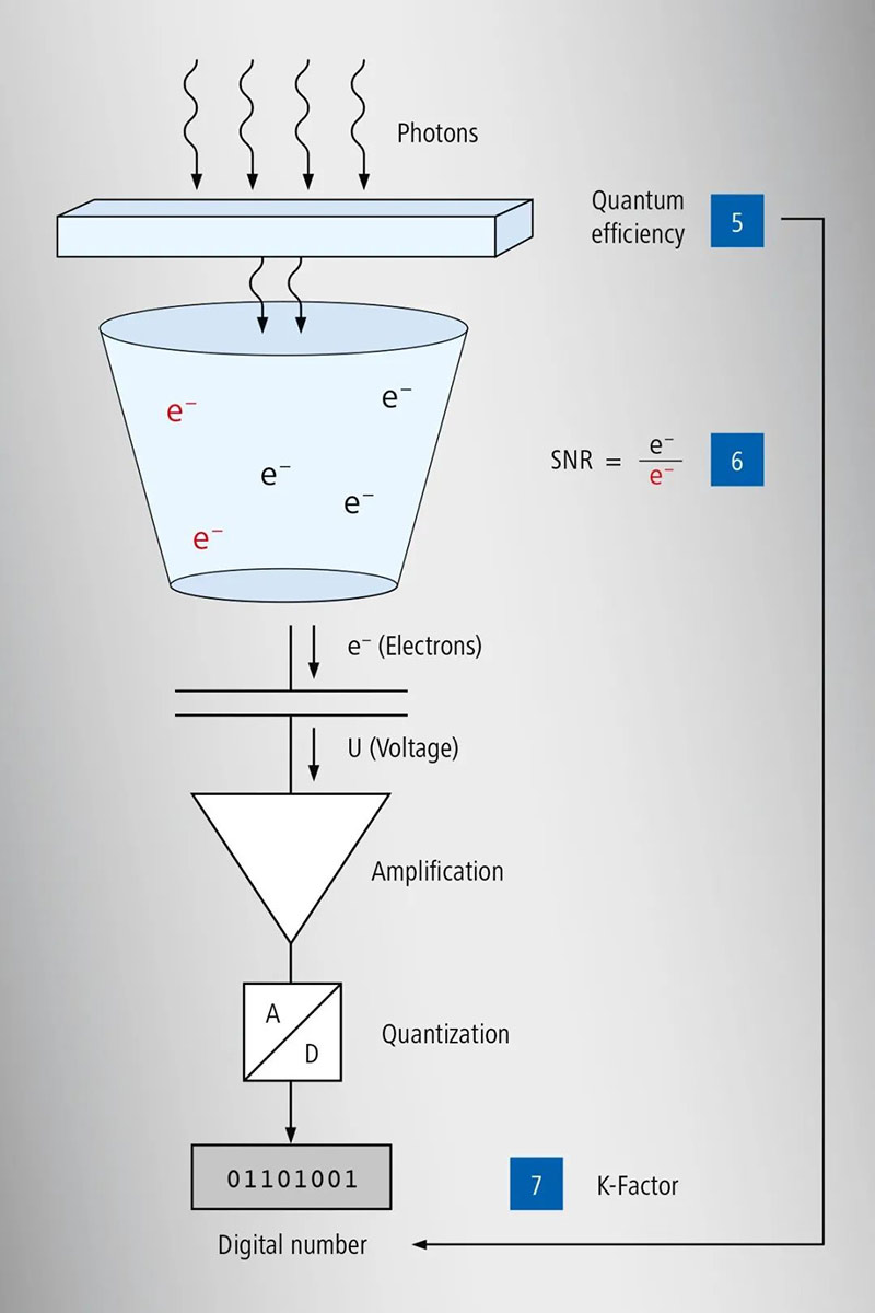 使用 CCD相機生成圖像,可分為四個主要階段或功能:通過光子與器件光敏區(qū)域相互作用產(chǎn)生電荷、收集和存儲釋放的電荷、電荷轉(zhuǎn)移和電荷測量