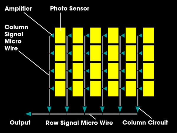 互補金屬氧化物半導(dǎo)體設(shè)計不是傳輸電荷桶,而是立即將電荷轉(zhuǎn)換為電壓,并在微線上輸出電壓。
