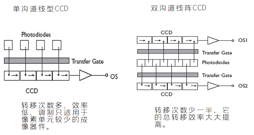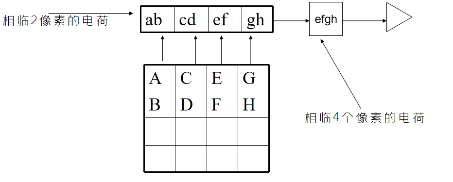 上面所述,都是按照,單行,單列的模式進(jìn)行電荷傳輸?shù)?。其?shí),如果單行的像素太多,會影響傳輸速度。這時可以使用多溝道傳輸。