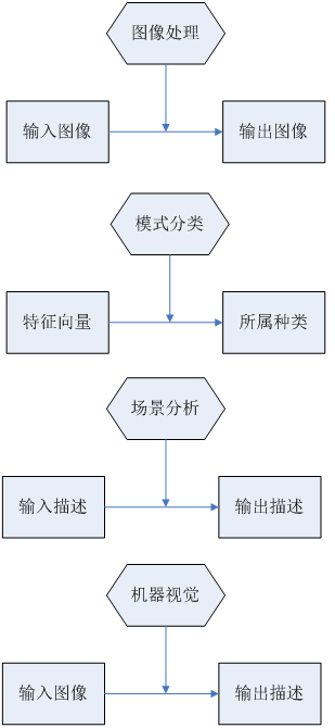 圖像處理主要是:根據(jù)現(xiàn)有的圖像得到一張新圖像。由于得到的是一張圖像,所以其輸出結(jié)果仍然需要人來對其進行分析解釋。