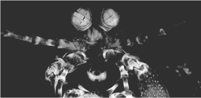 關(guān)于視覺有很多有趣的發(fā)現(xiàn),比如螳螂蝦的眼睛能探測(cè)到偏振光。人眼以及普通相機(jī)只能感受到光的強(qiáng)度信息而不能探測(cè)到光的偏振信息。澳大利亞昆士蘭大學(xué)的研究人員發(fā)現(xiàn),螳螂蝦的復(fù)眼(見圖1-2)能探測(cè)到偏振光。根據(jù)生物醫(yī)學(xué)及光學(xué)方面的理論知識(shí),生物組織特性與偏振信息有關(guān),所以螳螂蝦的眼睛是能夠“診斷”出生物組織的病變的。此外,蜻蜓等昆蟲具有復(fù)眼結(jié)構(gòu)(見圖1-3),蜘蛛有很多只眼睛,青蛙的眼睛只能看到動(dòng)態(tài)場(chǎng)景,狗對(duì)色彩信息的分辨能力極低。