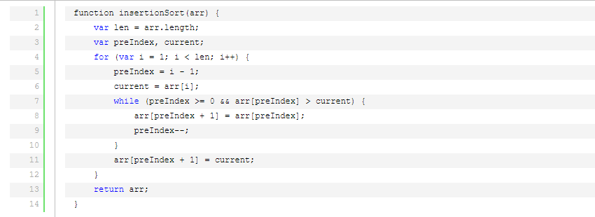一般來說,插入排序都采用in-place在數(shù)組上實(shí)現(xiàn)。具體算法描述如下: