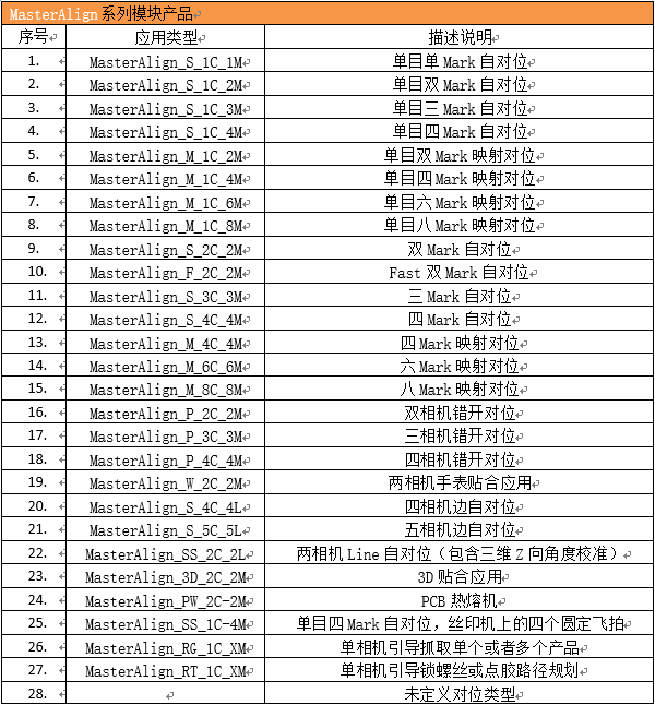 下表為MasterAlign視覺對位軟件的詳細(xì)應(yīng)用類型說明: