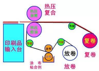 所用的薄膜是現(xiàn)場涂布的,所使用的粘合劑一般有溶劑型和乳液型兩種,并且是隨用隨配。即涂覆膜工藝操作時先在薄膜上涂布粘合劑,之后再與紙復合熱壓。