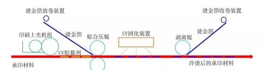 冷燙印是借助印版,利用UV固化膠黏劑將燙印箔轉(zhuǎn)移到承印材料上的一種技術(shù)。