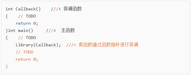 回調函數就是一個通過函數指針調用的函數。如果你把函數的指針(地址)作為參數傳遞給另一個函數,當這個指針被用來調用其所指向的函數時,我們就說這是回調函數。