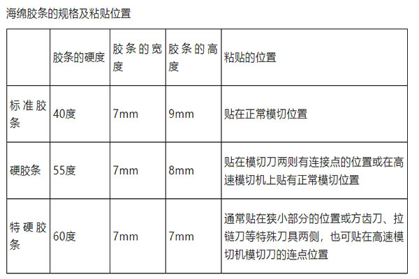 模切版裝刀完成后,為了防止模切刀、壓痕線在模切、壓痕時(shí)粘住紙張,使紙張?jiān)谀G袝r(shí)走紙順暢,在刀線兩側(cè)要粘貼彈性模切膠條。模切自粘膠條在模切中所起的作用非常重要,它直接影響模切的速度與質(zhì)量。在不同的模切機(jī)上,應(yīng)根據(jù)模切的速度和模切活件及有關(guān)條件,選用不同硬度、尺寸、形狀的模切膠條非常重要。