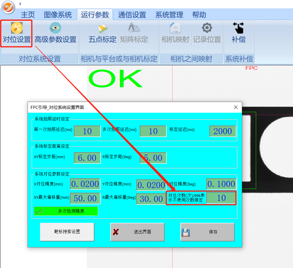 Fig.8 MasterAlign設(shè)定對(duì)位次數(shù)