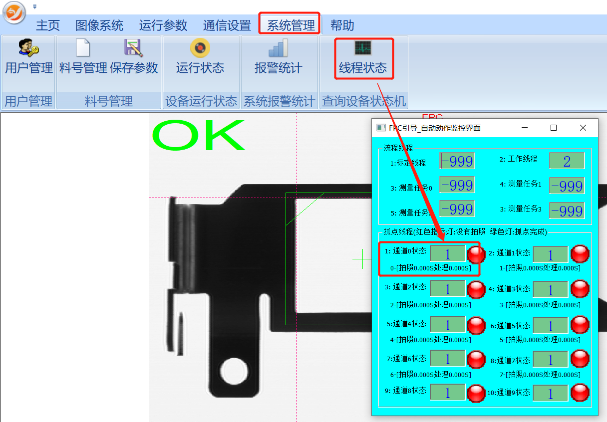 通過(guò)如圖9中所示,可以查詢程序線程中對(duì)當(dāng)前通道的拍照時(shí)間和圖像處理時(shí)間。