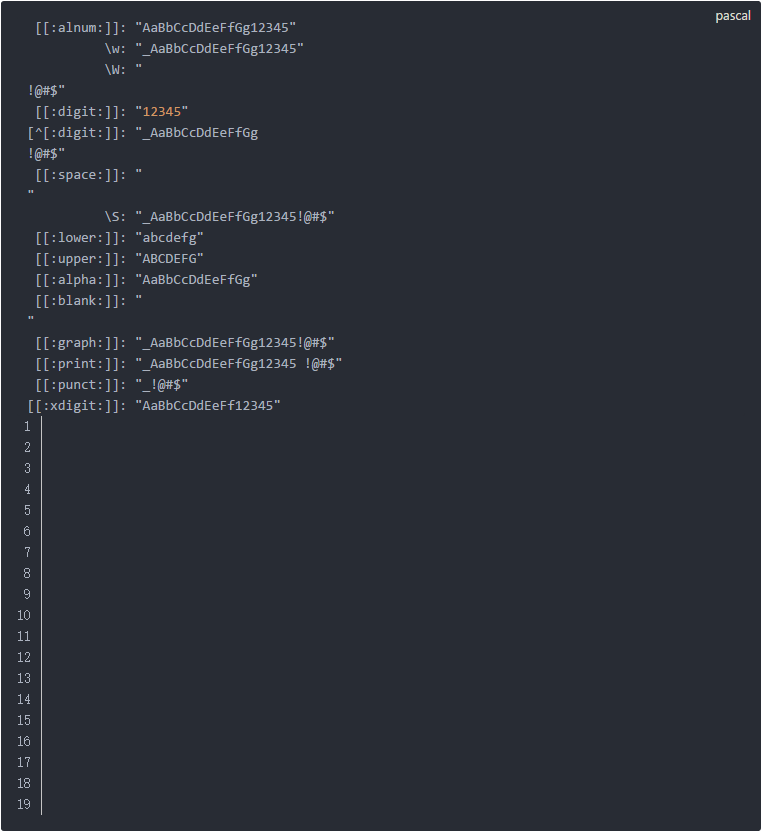 請(qǐng)仔細(xì)看一下這個(gè)輸出,并確認(rèn)與你的認(rèn)知是否一致。這里的有些字符類包含了換行符,因此在輸出的結(jié)果中也是換行的。