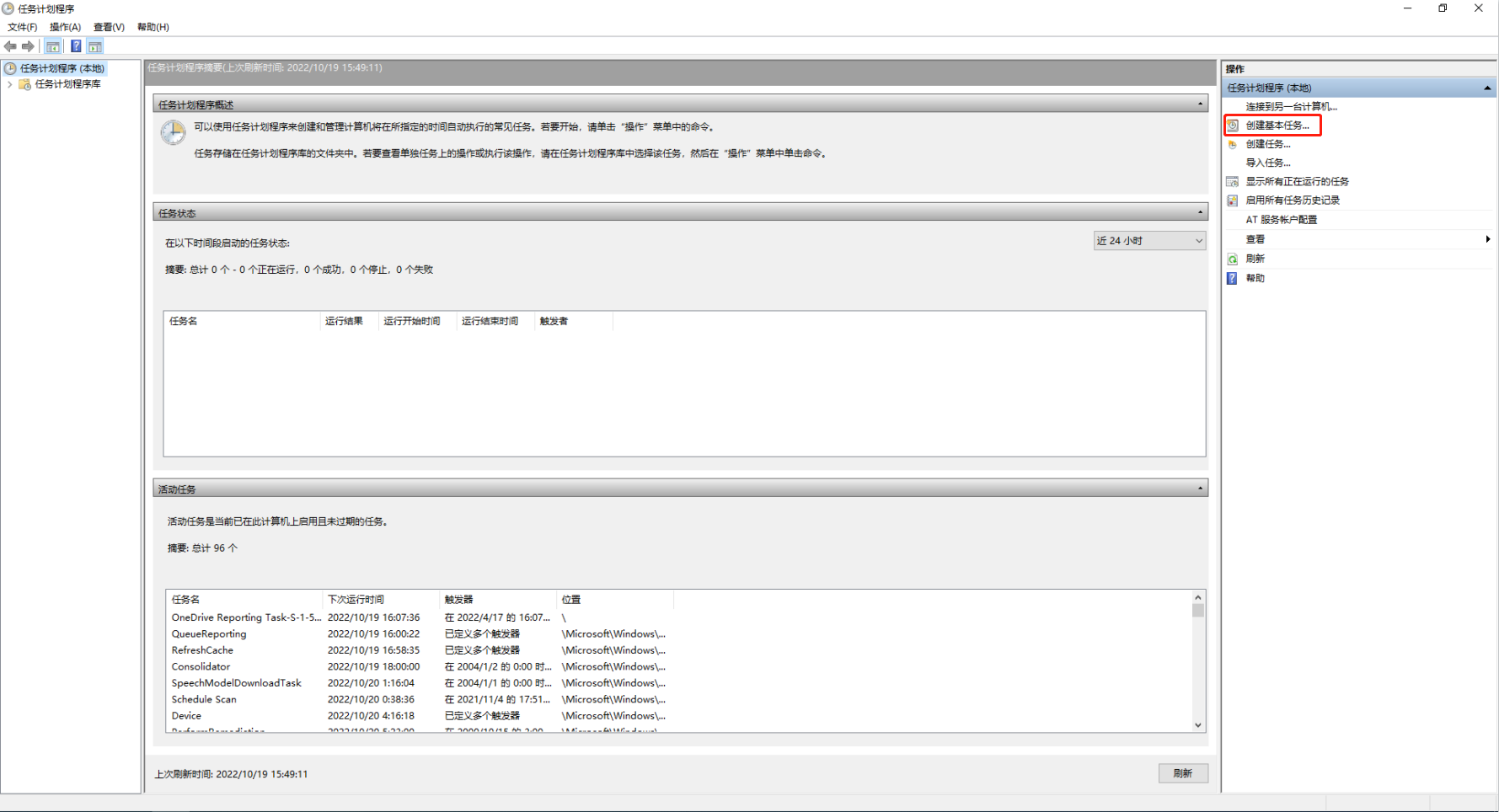 Step2:打開計(jì)劃任務(wù),選擇“創(chuàng)建基本任務(wù)“。