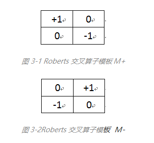 Roberts交叉算子實現(xiàn)的基礎(chǔ)是一階邊緣檢測,利用兩個模板,計算對角線上而不是坐標軸上的兩個像素的微分。這里命名這兩個模板分別為M+,M-
