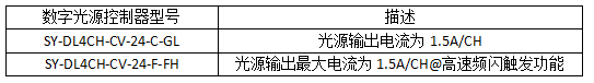 表1-2小功率數(shù)字光源控制器型號(hào)說(shuō)明