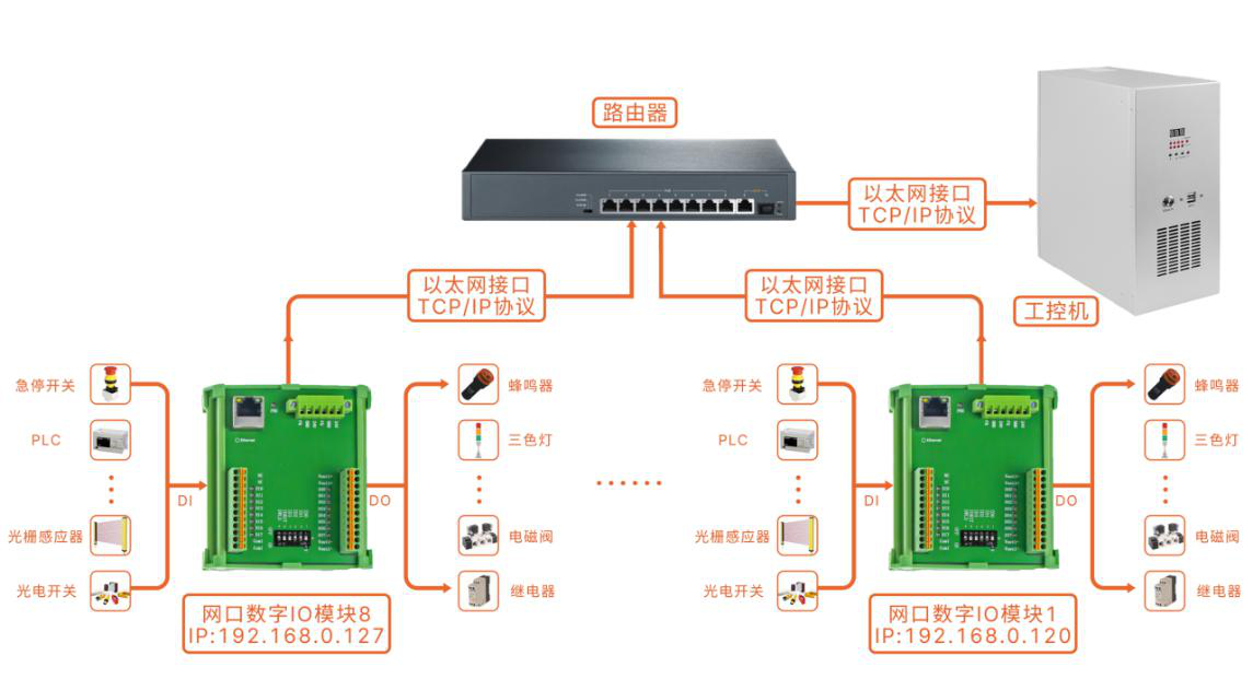 網(wǎng)口IO模塊擴(kuò)展用法示意圖
