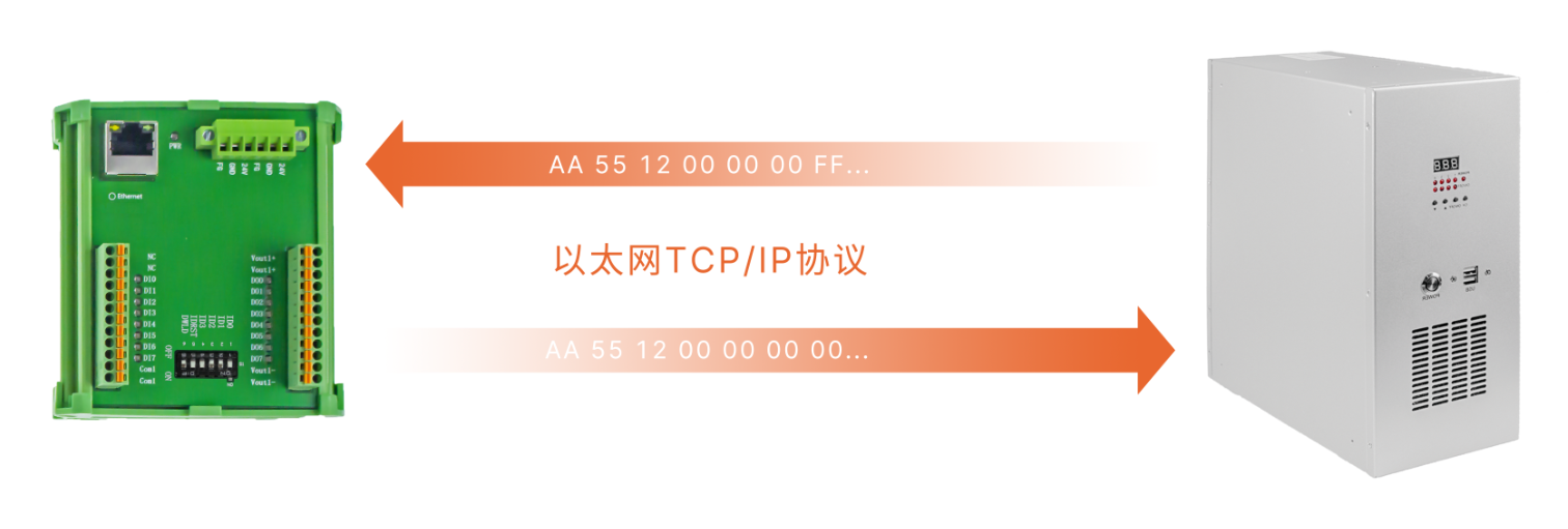 網(wǎng)口數(shù)字I/O模塊使用自定義TCP/IP協(xié)議進(jìn)行通信,通過交換機(jī)配合組成局域網(wǎng),每個(gè)模塊獨(dú)立通信互不干擾,擴(kuò)展增容極其簡(jiǎn)單方便。