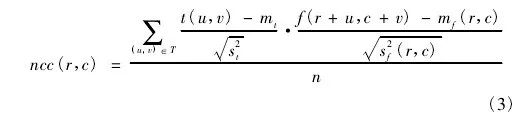 其中,mt表示模板圖像的平均灰度值,s2t表示模板圖像中所有像素灰度值的方差,t( u,v) 表示模板圖像 T 中點 ( u,v) 處的灰度值。即: