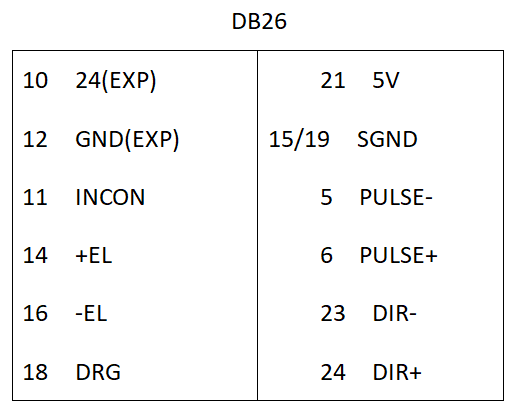 第二種:只接DB26上面的針腳,接10、12、11、14、16、18、5、6、23、24 十個針腳,確認針腳10(24v)、針腳12(0v)、針腳11(公共端)、針腳14(正限位)、針腳16(負限位)、針腳18(原點)是否接好接對,板卡上端口就不用接任何線了