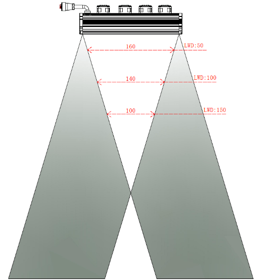 為了讓“縱向缺陷”也無(wú)處遁逃,可采用交叉線形光源。它可利用特殊的光學(xué)設(shè)計(jì),使兩側(cè)的光線呈一定角度匯集到光源中間位置,凸顯縱向缺陷,通過(guò)降低背景亮度來(lái)提升缺陷的對(duì)比度。