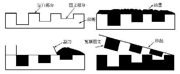 凹版印刷:凹版印刷是一種直接的印刷方法,它將凹版凹坑中所含的油墨直接壓印到承印物上,所印畫面的濃淡層次是由凹坑的大小及深淺決定的,如果凹坑較深,則含的油墨較多,壓印后承印物上留下的墨層就較厚;相反如果凹坑較淺,則含的油墨量就較少,壓印后承印物上留下的墨層就較薄。