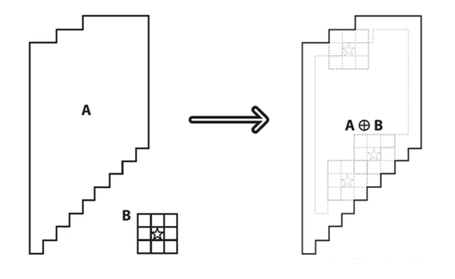 膨脹在數(shù)學(xué)形態(tài)學(xué)運算中的作用是擴展物體的邊界點。在數(shù)字圖像處理中,對于確定的結(jié)構(gòu)元素,通過膨脹運算可以對于一些相臨距離較短的區(qū)域進行連接。不過,圖像的膨脹處理是雜點敏感的,細小的雜點通過膨脹處理往往會變得較為明顯。