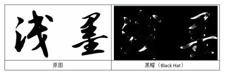 黑帽(Black Hat)運算為”閉運算“的結(jié)果圖與原圖像之差。數(shù)學(xué)表達式為: