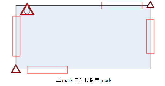 說明:三Mark自對位有單相機和三相機兩種情況,相機都是在平臺端。單相機模型拍攝完一個交點后移動位置拍攝另一個交點,三相機模型的三個相機分別拍攝三個交點。非平臺端上的產(chǎn)品通過定位銷或其他方式確保來料都是在相對固定的位置,平臺端的產(chǎn)品來料位置不固定,找出三個交點后,根據(jù)糾偏算法找到偏移量,根據(jù)偏移量將平臺端的產(chǎn)品貼到非平臺端上。
