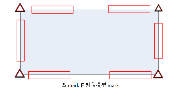 說明:四Mark自對位有單相機和四相機兩種情況,相機都是在平臺端。單相機模型拍攝完一個交點后移動位置拍攝另一個交點,四相機模型的四個相機分別拍攝四個交點。非平臺端上的產(chǎn)品通過定位銷或其他方式確保來料都是在相對固定的位置,平臺端的產(chǎn)品來料位置不固定,找出四個交點后,根據(jù)糾偏算法找到偏移量,根據(jù)偏移量將平臺端的產(chǎn)品貼到非平臺端上。