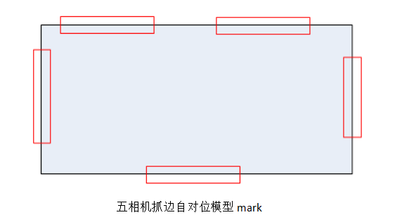 應用場景:五相機抓邊模型比四相機抓邊模型多了角度糾偏,更適合弧角的矩形屏手機的油墨區(qū)印刷對位