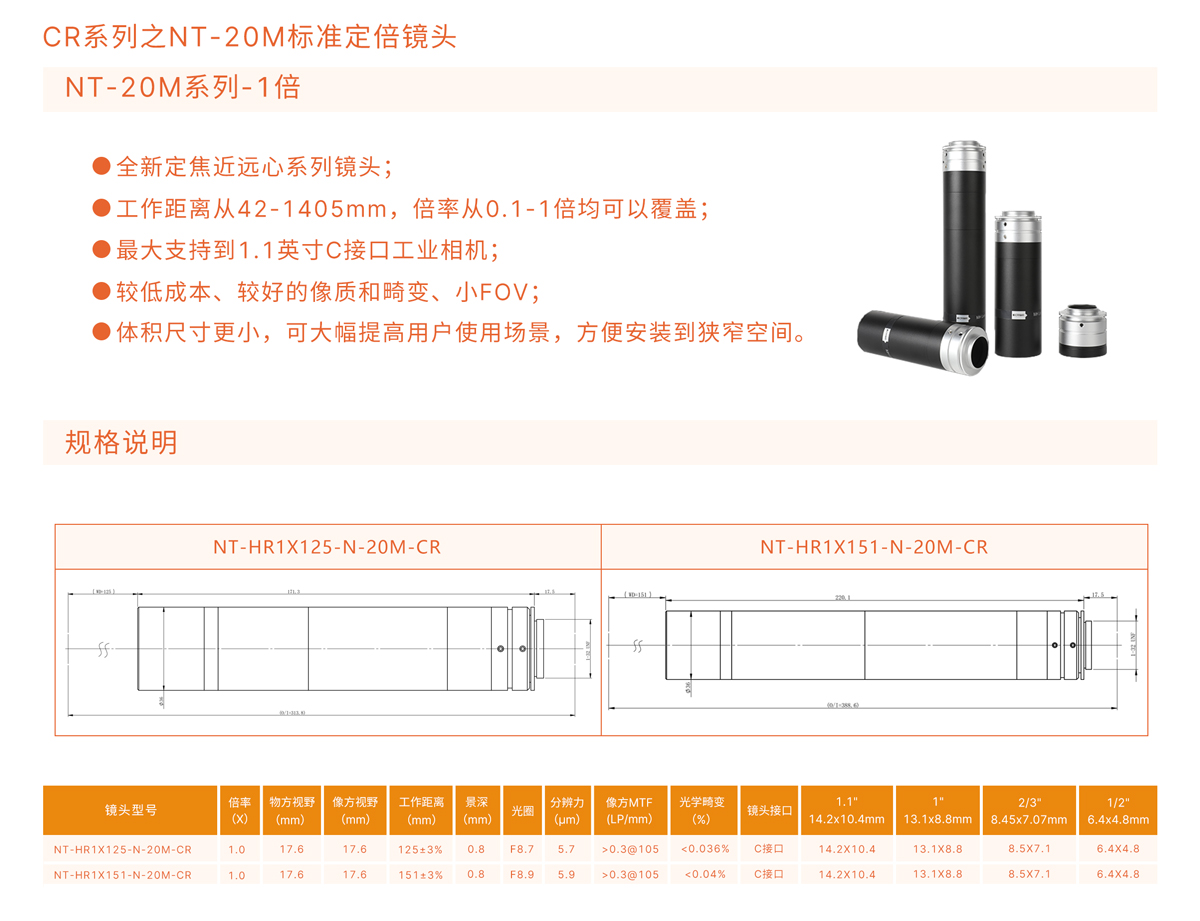 全新定焦近遠心系列鏡頭;