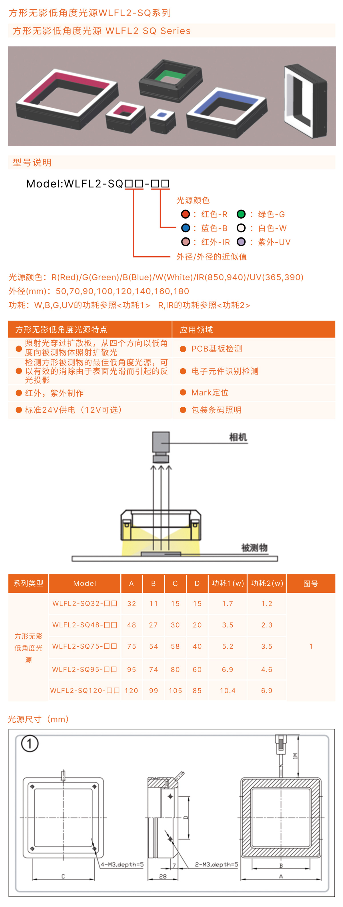 照射光穿過擴散板,從四個方向以低角度向被測物體照射擴散光,檢測方形被測物的最佳低角度光源,可以有效的消除由于表面光滑而引起的反光投影。