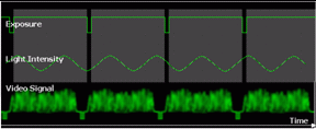 在選擇輔助光源時,切勿將區(qū)域掃描(Area-scan)用的交流電(AC Power)光源在線性掃描(Line-scan)上,線性掃描應(yīng)該選用交流電(DC Power)光源作為輔助, 以下是簡單的介紹有關(guān)攝影機曝光成像時間與光源頻率之間的互動關(guān)系。