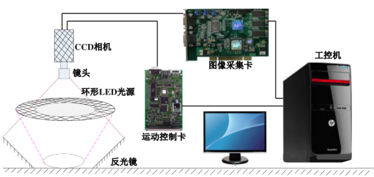 傳統(tǒng)的方法是采用5臺相機獲取藥片全方位的圖像信息,但是會引發(fā)諸多問題:當(dāng)使用多臺相機采集圖像時,如果采用多個圖像處理系統(tǒng),會引發(fā)后續(xù)的運動控制繁瑣;如果采用一個圖像處理系統(tǒng),會引發(fā)圖像拼接等造成的時間復(fù)雜度大、精度差等問題。本文引入反光鏡,采用平面鏡成像原理,獲取藥片的側(cè)面信息。