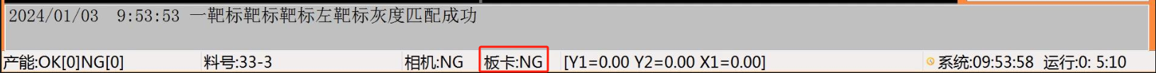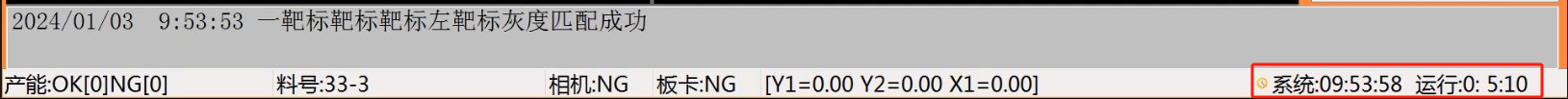 報警信息顯示框如上圖所示,主要顯示內(nèi)容:當前電腦系統(tǒng)時間下+圖像處理NG/對位狀態(tài)NG/平臺回OK/NG/標定OK/NG/系統(tǒng)自動運行中等相關(guān)信息。(有新消息時會替換覆蓋上一次信息)