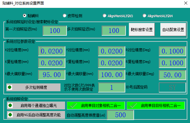 1:對(duì)位設(shè)置:設(shè)置對(duì)位參數(shù)信息,如延時(shí)、精度等;