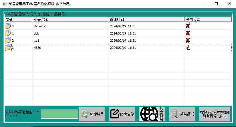 2:雙擊右鍵:將當(dāng)前選擇的料號(hào)進(jìn)行刪除。(不可恢復(fù))