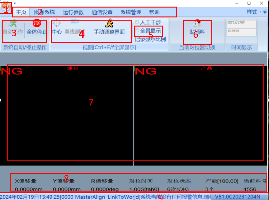 9:報(bào)警狀態(tài)欄(需所有工位均經(jīng)過(guò)一次無(wú)報(bào)警生產(chǎn),狀態(tài)欄才會(huì)顯示藍(lán)色無(wú)報(bào)警狀態(tài));
