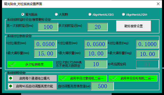 XY對位精度:X方向/Y方向精度上限,即視覺當前對位X方向/Y方向偏移量判定值小于設定值才會輸出對位OK;