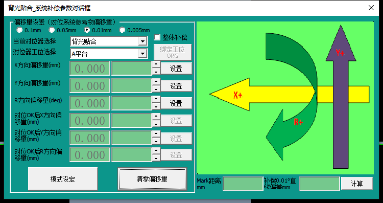 根據補償方向圖示,在右側對應的方向補償寫入補償數值后,點擊“設置”累加到左側的總補償參數中。