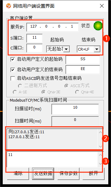 更改IP/端口、數(shù)據(jù)后需要點擊下面的“保存參數(shù)”后再進(jìn)行操作