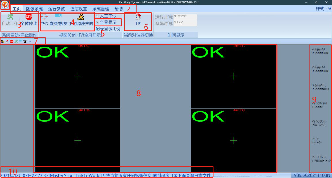 10、報警狀態(tài)欄(需所有工位均經(jīng)過一次無報警生產(chǎn),狀態(tài)欄才會顯示藍色無報警狀態(tài))。