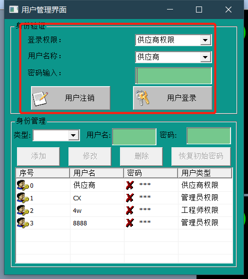 選擇“登錄權限”“用戶名稱”輸入密碼(供應商密碼:310525),后點擊用戶登錄。