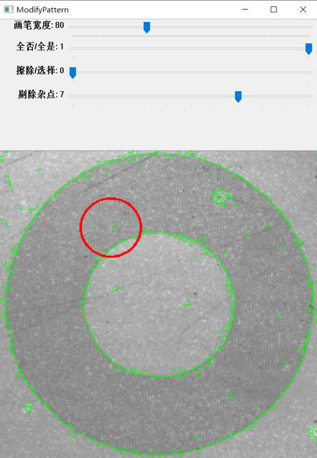 當圖像的質(zhì)量較差時,邊緣模糊產(chǎn)生大量的雜點;從而增加了搜索的時間,同時影響了搜索的準確性。通過調(diào)整【剔除雜點】去除大部分的干擾點,優(yōu)化了模板的輪廓信息。