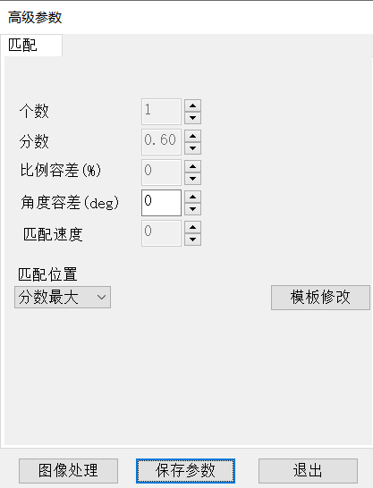 通過鼠標操作 ROI 選定模板,進入【高級參數(shù)】設置匹配角度范圍,最小相似度分數(shù),并可修改模板。