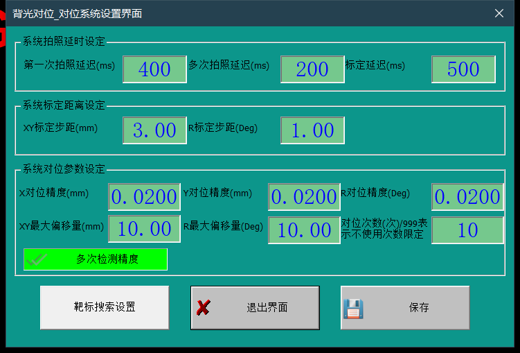 5、對位次數(shù):設置對位的最大次數(shù),當超過設定值則對位失敗。多次對位精度:需要開啟。