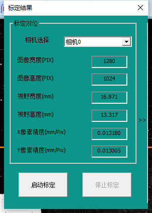 視野寬度:顯示五點標定后標定通道相機視野長邊方向長度;