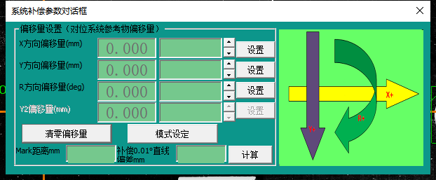 根據(jù)補償方向圖示,在右側(cè)對應(yīng)的方向補償寫入補償數(shù)值后,點擊“設(shè)置”累加到左側(cè)的總補償參數(shù)中。